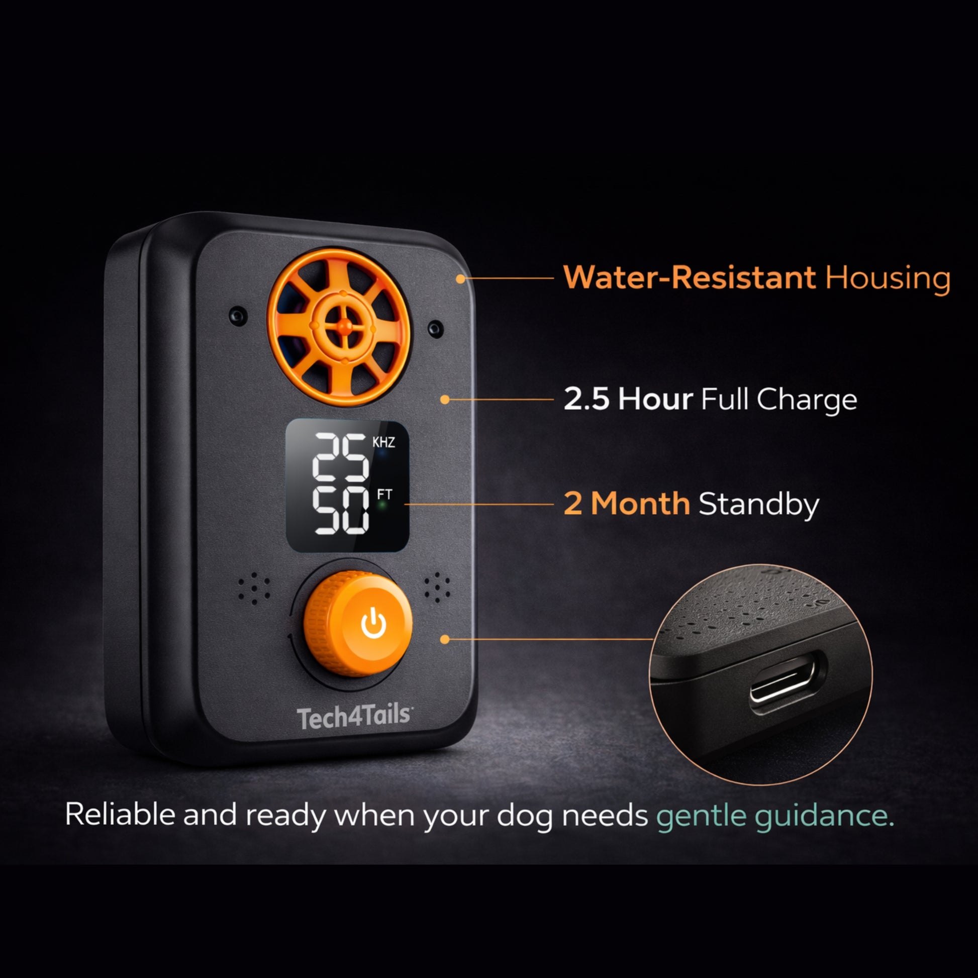 Safety is the foundation of the Tech4Tails mission. The brand was founded specifically to provide a humane alternative to shock collars and aversive training methods. Our devices use "Pattern Interruption" either a safe ultrasonic sound or a pain-free vibration to redirect a dog’s attention. There are no electric shocks, no chemical sprays and absolutely no physical pain involved.