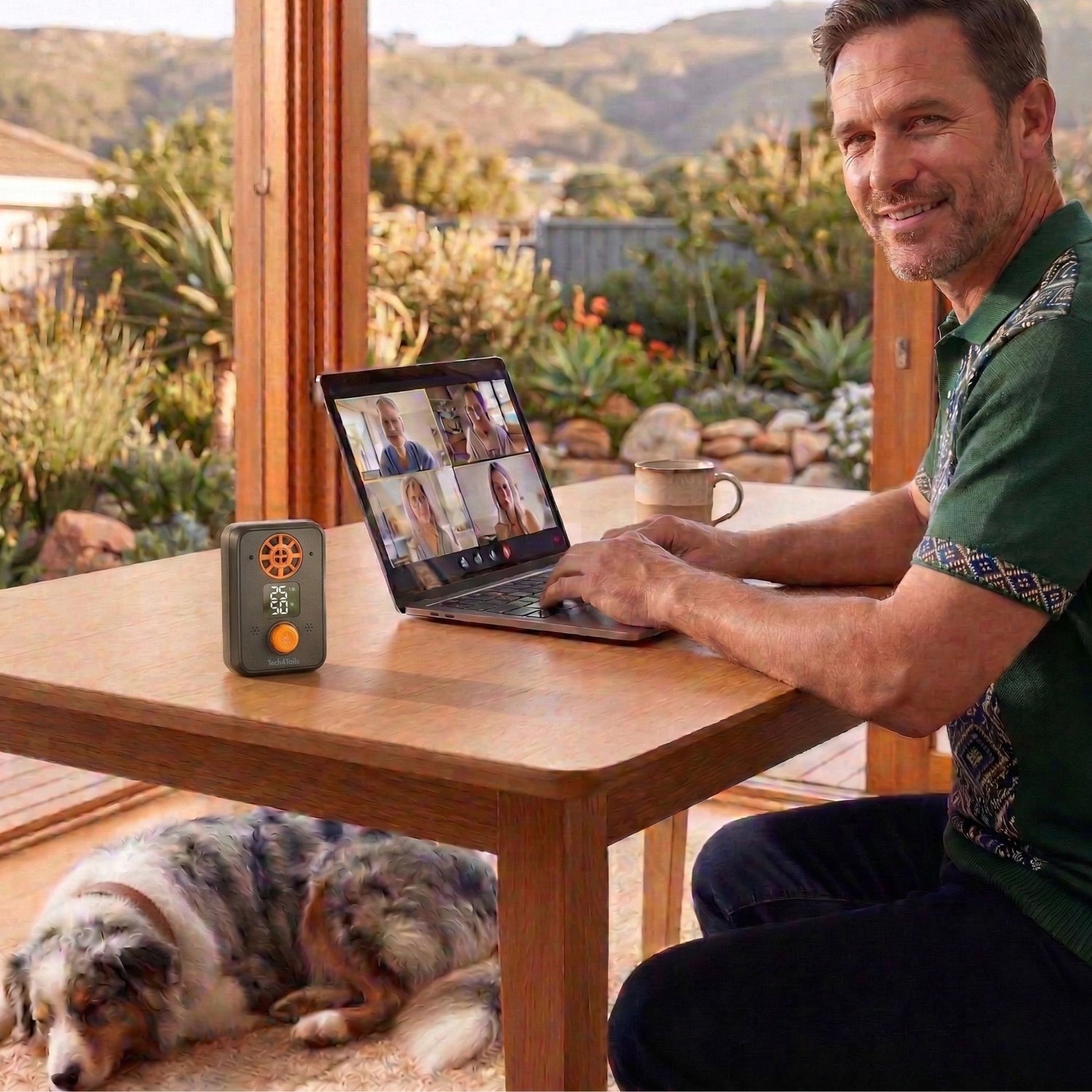 When the doorbell rings mid-meeting, you shouldn't have to scramble for the mute button. Tech4Tails is designed for the modern home office. It catches that first alert bark and interrupts the behaviour instantly, training your dog to remain calm while you stay professional. Quiet home, focused mind.